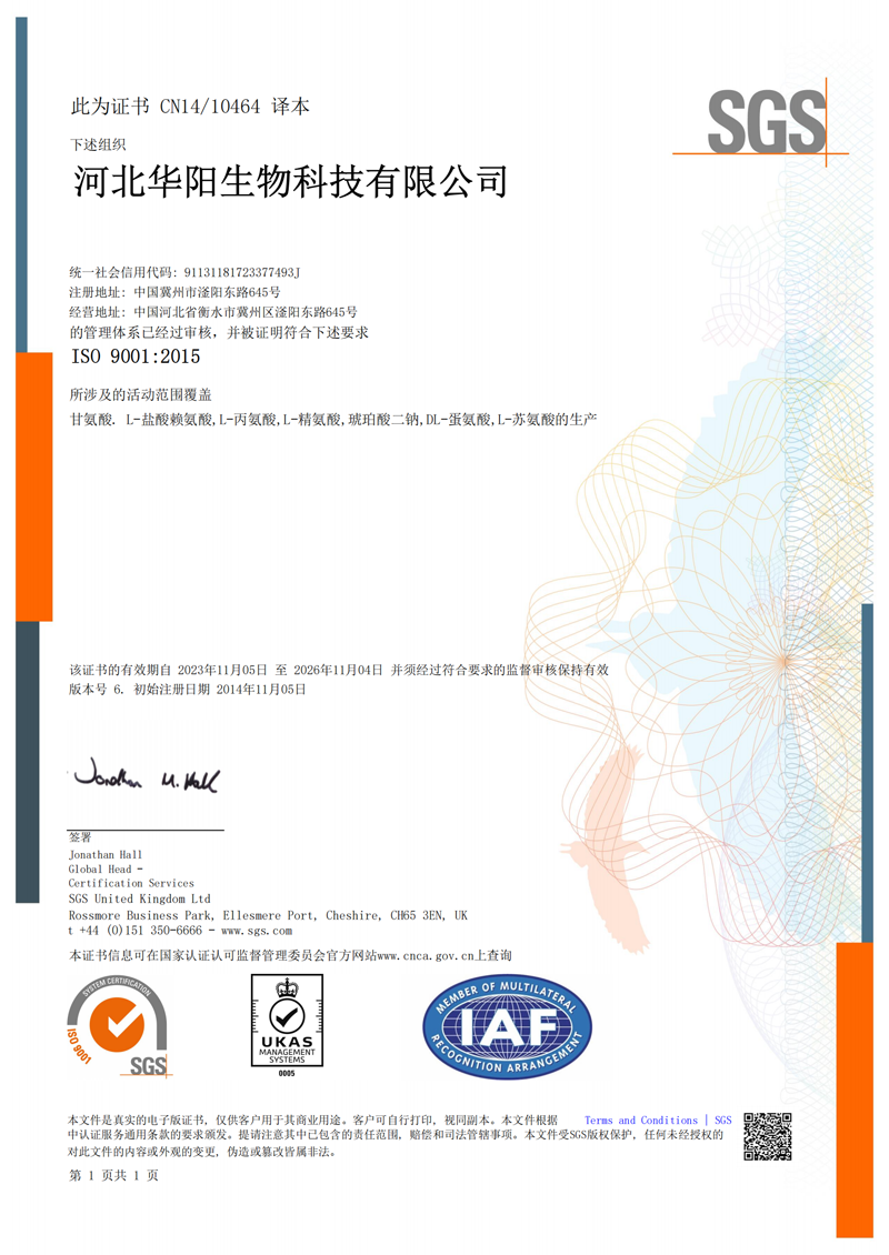 河北華陽集團坐落于河北省衡水市冀州區(qū)省級工業(yè)園區(qū)(始建于1987年,前身為冀州市華陽化工有限責任公司)。集團下屬四個公司:河北華陽生物科技有限公司、河北華悅氨基酸科技有限公司、滄州華晨生物科技有限公司、衡水市陽力商貿有限公司。主要生產(chǎn)甘氨酸、L-丙氨酸、L-蘇氨酸、DL-蛋氨酸、L-賴氨酸鹽酸鹽、L-半胱氨酸鹽酸鹽、干貝素等氨基酸系列食品級產(chǎn)品,廣泛應用于食品、飲料、飼料等行業(yè)。......